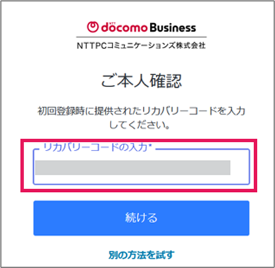 C-1.SMS設定時に保存していたリカバリーコードを入力します。