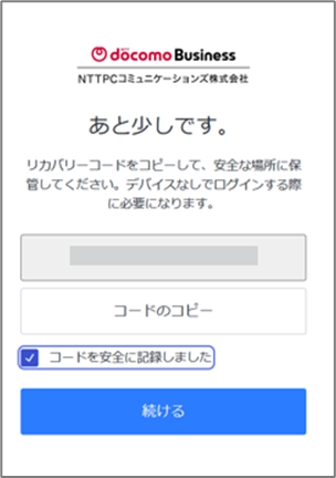 新たに発行されたリカバリーコードは必ずお手元に保管頂きますようお願いいたします。